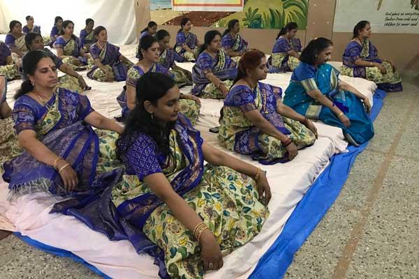MVM Hyderabad celebrated Basant Panchami along with Khadi Diwas on 30 January 2020. The program began with Guru Puja and invocation on Goddess Saraswathi, recitation of Shanti Path, explaining in detail meaning of each verse, followed by soulful rendition of devotional songs, bhajans and Bhagwath Gita chanting. Principal, staff and students took part in group meditation.